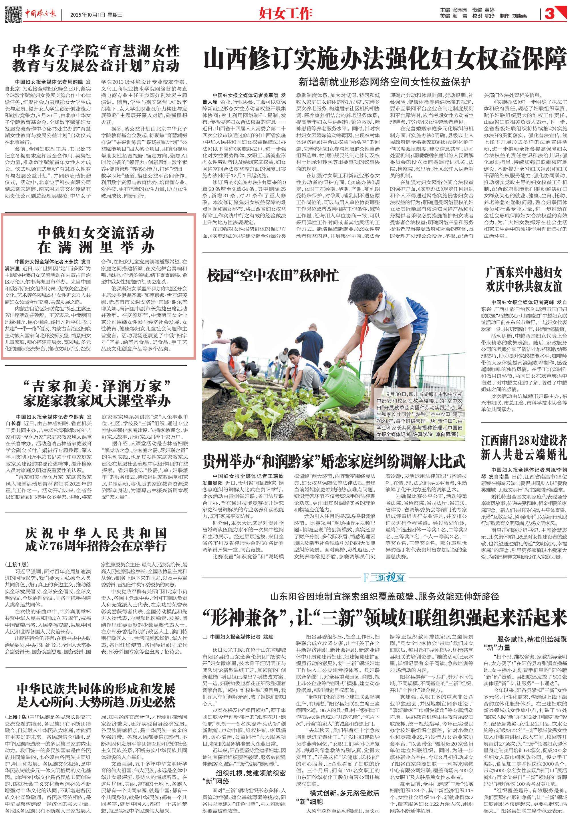 2025年10月1日,《中国妇女报》第3版刊发题为《中俄妇女交流活动在满洲里举办》的文章,报道了中俄妇女交流活动在内蒙古自治区呼伦贝尔市满洲里市举办,来自中国和俄罗斯各领域杰出女性近200人共商妇女领域合作交流、共谋发展之路。