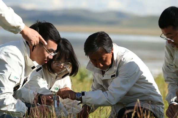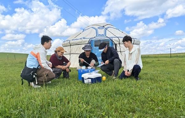 马腾带领团队在内蒙古锡林郭勒大草原采集自然发酵乳。左三为马腾。受访者供图