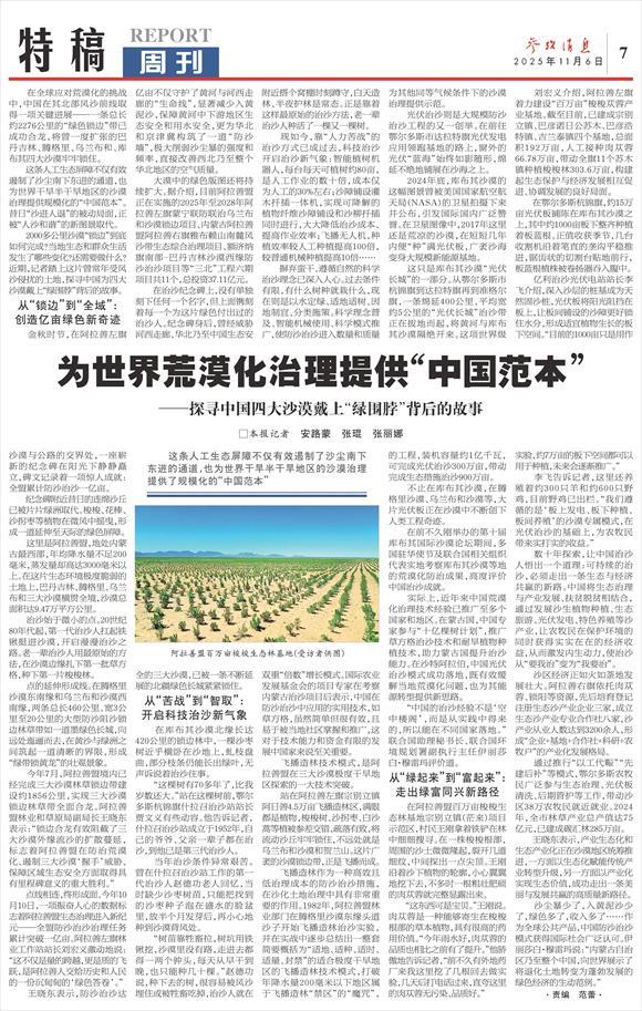 【原标题】为世界荒漠化治理提供“中国范本”——探寻中国四大沙漠戴上“绿围脖”背后的故事