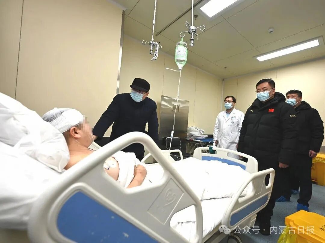 1月19日,宋元明在医院看望慰问受伤人员。草原云·内蒙古新闻网记者 韩卿立 摄