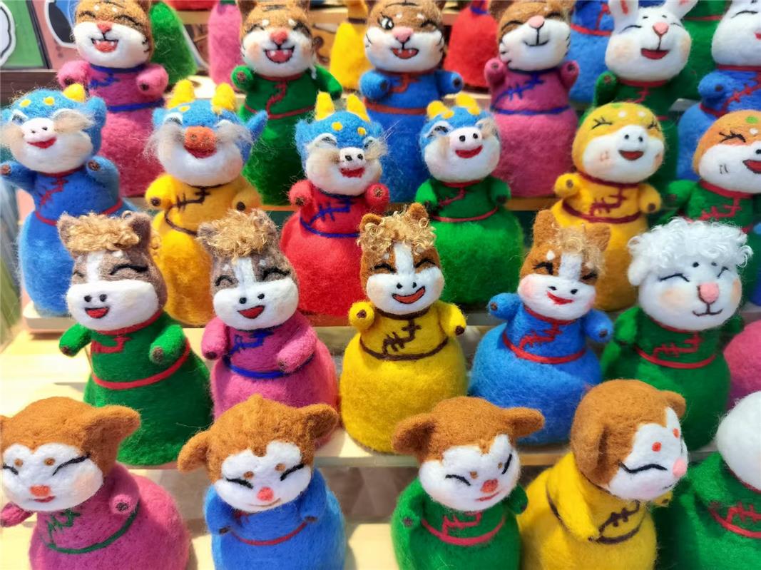 在呼和浩特市回民区宽巷子的一家非遗手作店内,来自青岛的游客王艺女士,被展台上憨态可掬的十二生肖蒙古族毡绣摆件深深吸引。“这些小动物太可爱了,每一个都自带草原的灵气!”她告诉记者,一定要把这份来自草原的心意,当作新年礼物带回青岛送给家人。