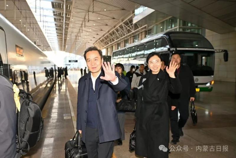 春风浩荡迎盛会,信心满怀启新程。2026年全国两会召开在即,3月3日上午,出席十四届全国人大四次会议的内蒙古代表团带着内蒙古各族群众的重托和期待,乘坐高铁列车启程赴京,共赴这场春天的盛会。