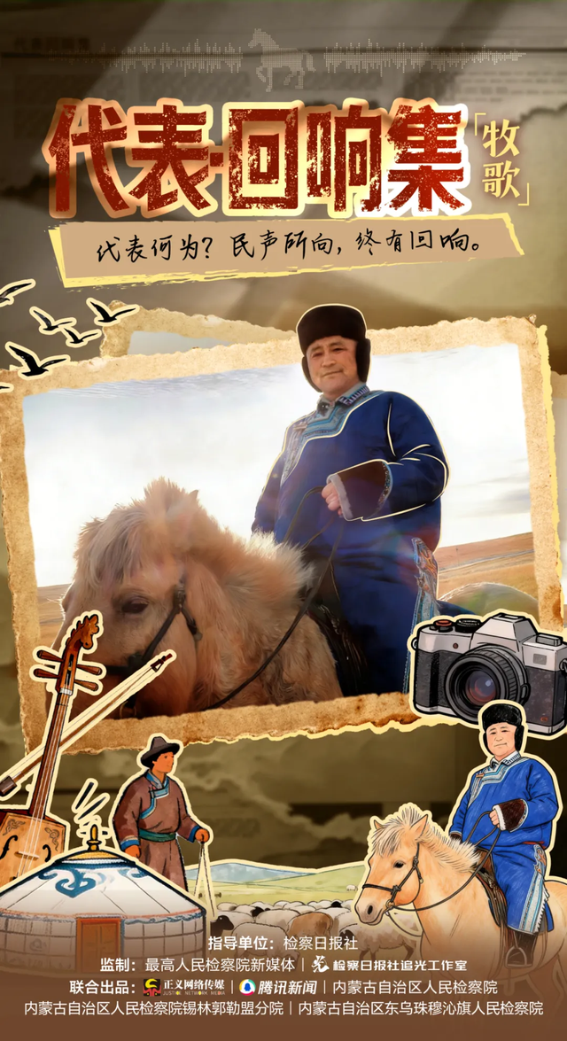 风吹草原,带来无边的绿浪,也带来牧民们的歌声。那些牧歌诉说着草原的期盼。代表何为?让民声所向,终有回响。检察何为?助声声回响,落回草原,成就年年绿野苍苍。
