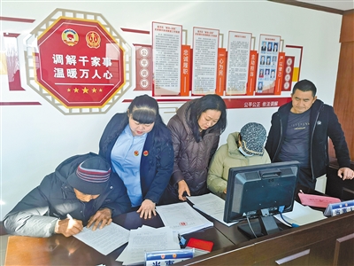 临河区综治中心特邀政协委员调解员化解纠纷。 王震 摄