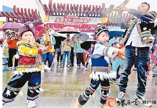 3月8日,广西柳州市融水苗族自治县风情苗乡景区举行首届二十坡会,芦笙踩堂、山歌对唱等丰富多彩的民俗活动,吸引众多市民和游客观赏、体验。熊平 摄