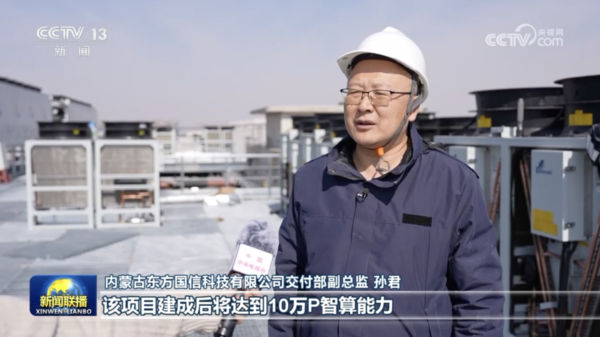 内蒙古东方国信科技有限公司交付部副总监 孙君: 该项目建成后将达到10万P智算能力,成为华北规模领先的液冷智算基地,践行算电协同与绿电直供。