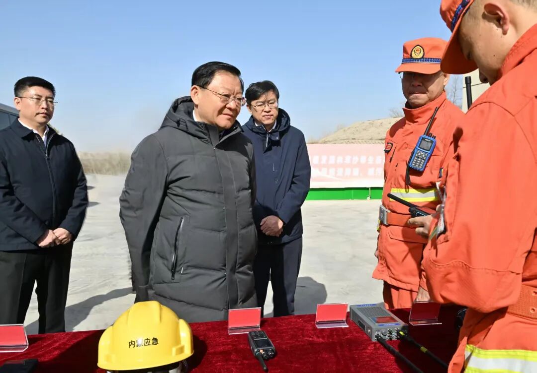 3月24日,自治区党委书记、人大常委会主任王伟中在锡林浩特市森林草原防灭火指挥平台仔细询问森林草原保护情况。草原云·内蒙古新闻网记者 马建兵 摄
