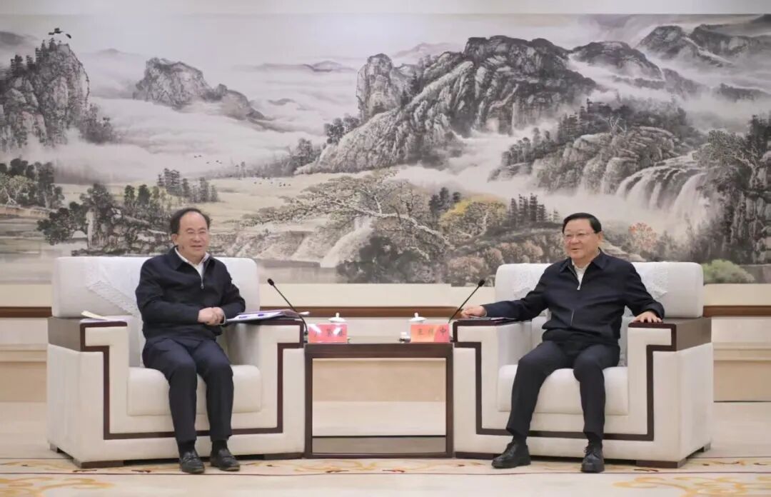 3月26日,自治区党委书记、人大常委会主任王伟中在呼和浩特会见广东省云浮市委书记、市人大常委会主任卢荣春一行。草原云·内蒙古新闻网记者 马建兵 摄