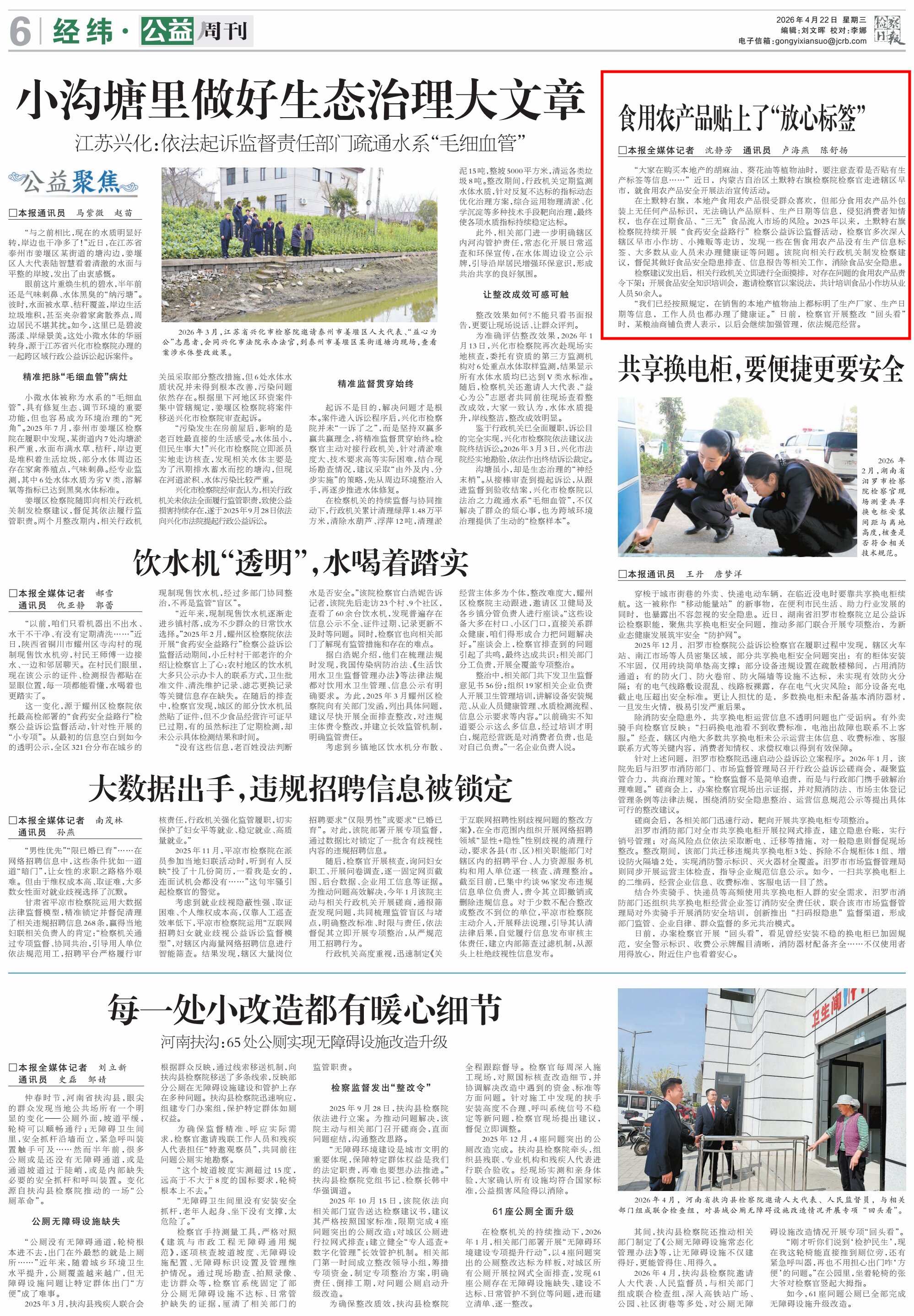 2026年4月22日,《检察日报》第6版刊发题为《食用农产品贴上了“放心标签”》的文章,报道了内蒙古自治区土默特右旗检察院检察官走进辖区早市,就食用农产品安全开展法治宣传活动。