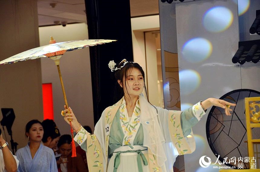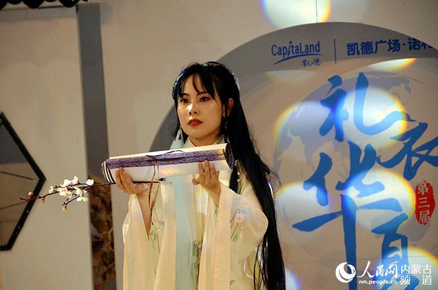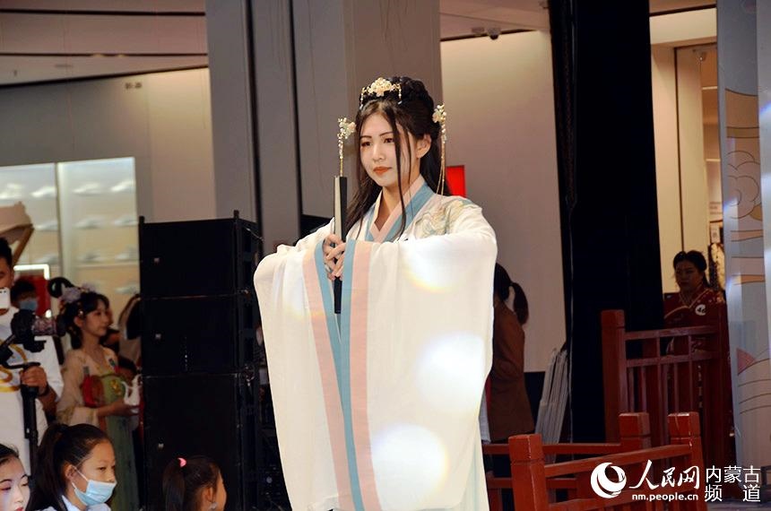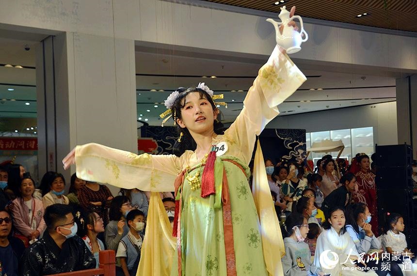 9月20日下午,在中秋佳节来临之际,第三届礼衣华夏汉服超模大赛在呼和浩特市凯德广场精彩上演。现场236名参赛选手经过精心地装扮,为现场的市民献上了美轮美奂的服饰表演,展现了中国传统服饰文化的古韵之美。(王慧)