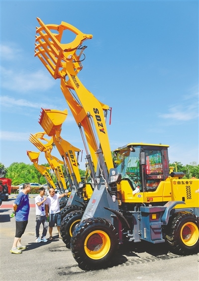 8月13日,在第三十届内蒙古国际农业博览会上,工作人员向观众介绍农机产品。记者 王磊 摄