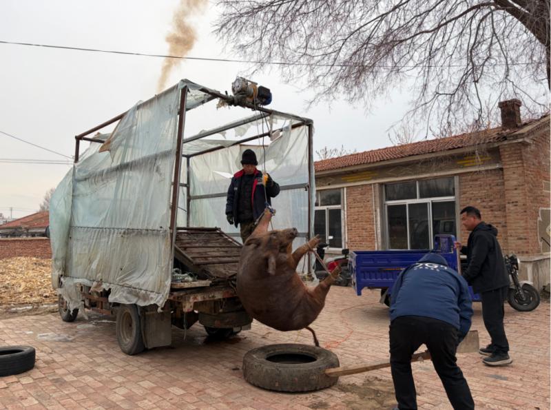 吃杀猪菜一向讲求男女分工,家中的男子负责抓猪屠宰,女性们则负责后续的备菜烹煮工作。男人们穿上厚实的棉袄,呵着白气走向猪圈,用早已准备好的绳索,麻利地将猪的四肢捆扎结实。随后,几人合力将猪抬到宰猪的车上,王国春深吸一口气,拿起杀猪刀,对准猪的脖颈,动作干脆利落。鲜红的猪血顺着事先准备好的大盆缓缓流淌,不一会儿就接了满满一盆。杀完猪,男人们顾不上休息,就赶忙用滚烫的开水给猪褪毛,铁刮子在猪身上来回刮擦,发出“唰唰”的声响,不一会儿,原本黑乎乎的猪就变得白白净净。紧接着,他们立刻将猪开膛破肚,把内脏分门别类地整理好,猪头、猪蹄也被仔细地清洗干净,准备着后续的处理。